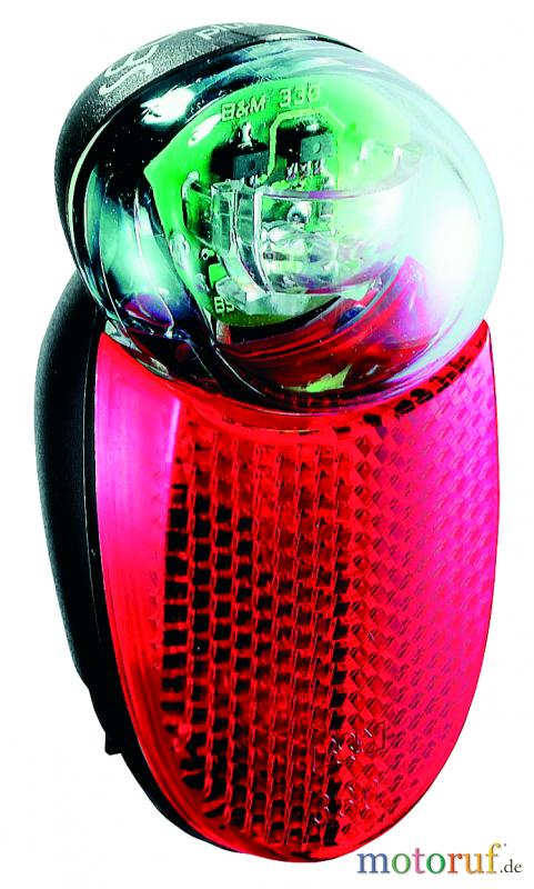 Mit elektronischem Standlicht (ohne Akku, ohne Batterie). Eine ultrahelle Leuchtdiode (= über 100.000 h Lebensdauer). Integrierter Rückstrahler. Strom- und Masseanschluss als Steck- und Schneidkontakt. Prüfzeichen: D, E, GB.